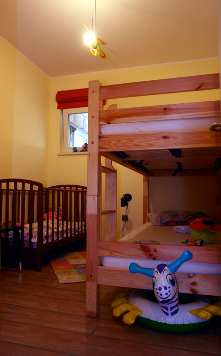 1 cameretta per bambini con 2 letti (a castello) e una culla, bagno WC, cucina,
